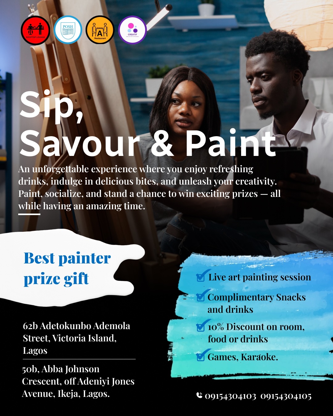 Looking for a memorable date night, a fun group activity, or an inspiring solo adventure? ‘Sip, Savor and Paint’ is the perfect blend of entertainment and relaxation. Transform your downtime into an extraordinary experience filled with colors, flavors, and endless creativity.